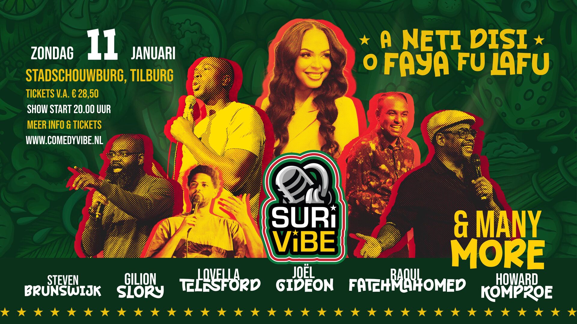 Bereid je voor op een avond vol keiharde grappen, herkenbare verhalen en warme Surinaamse sfeer. Op 11 januari 2026 staat Comedy Vibe in Tilburg, met een line-up van topcomedians met Surinaamse roots.